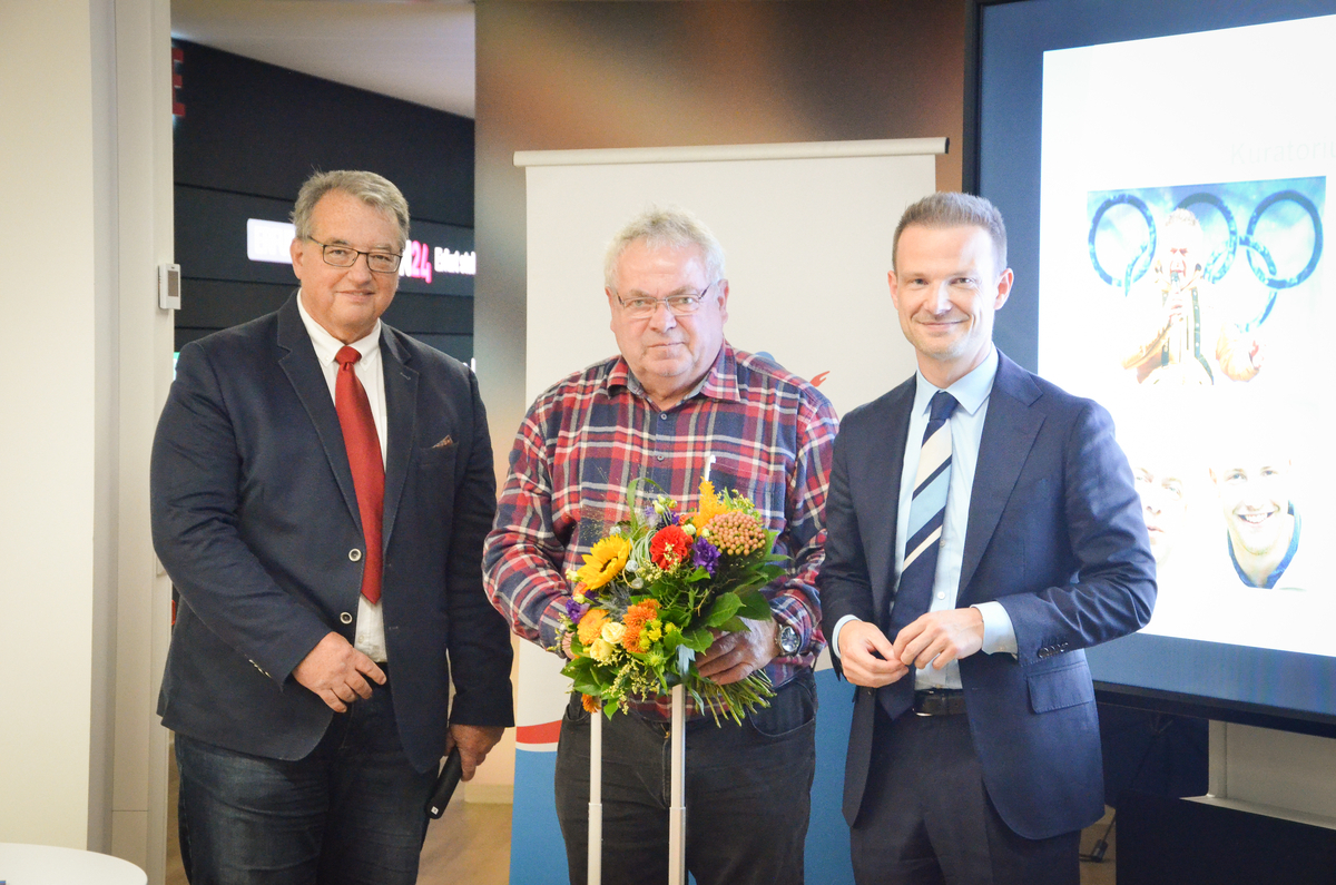 Die Kuratoren verabschiedeten auch ein Mitglied der ersten Stunde, Andreas Trautvetter. Der frühere Finanz- und Innenminister des Freistaates hatte maßgeblich für die finanzielle Ausstattung der Stiftung mit dem Grundstockvermögen und die spätere Destinatärsschaft der GlücksSpirale gesorgt. Er blieb auch nach seinem Ausscheiden aus den politischen Ämtern dem Kuratorium als natürliches Mitglied treu und beendet aber aus Altersgründen zum Jahresende seine Mitgliedschaft. Das geschäftsführende Vorstandsmitglied, Arnd Heymann, würdigte in einer Laudatio die zahlreichen Verdienste von Andreas Trautvetter für die Stiftung, aber auch den Thüringer Sport, so u.a. die durch ihn initiierte Gründung der Thüringer Polizeisportfördergruppe. Der Kuratoriumsvorsitzende Stefan Gruhner dankte Trautvetter ausdrücklich für seine Arbeit und Wirken und sagte: „Du hast in Deinen vielfältigen Funktionen einfach gemacht und die Bedenken bei Seite geschoben und damit vieles angeschoben, dass daraus, wie beispielsweise die Stiftung oder die Polizeisportfördergruppe eine Erfolgsgeschichte wurde.“